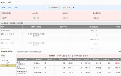 材料動態收發存監控,真實反映原材庫存情況,指導采購,核查材料,發現問題。促進生產,確保工程進度。